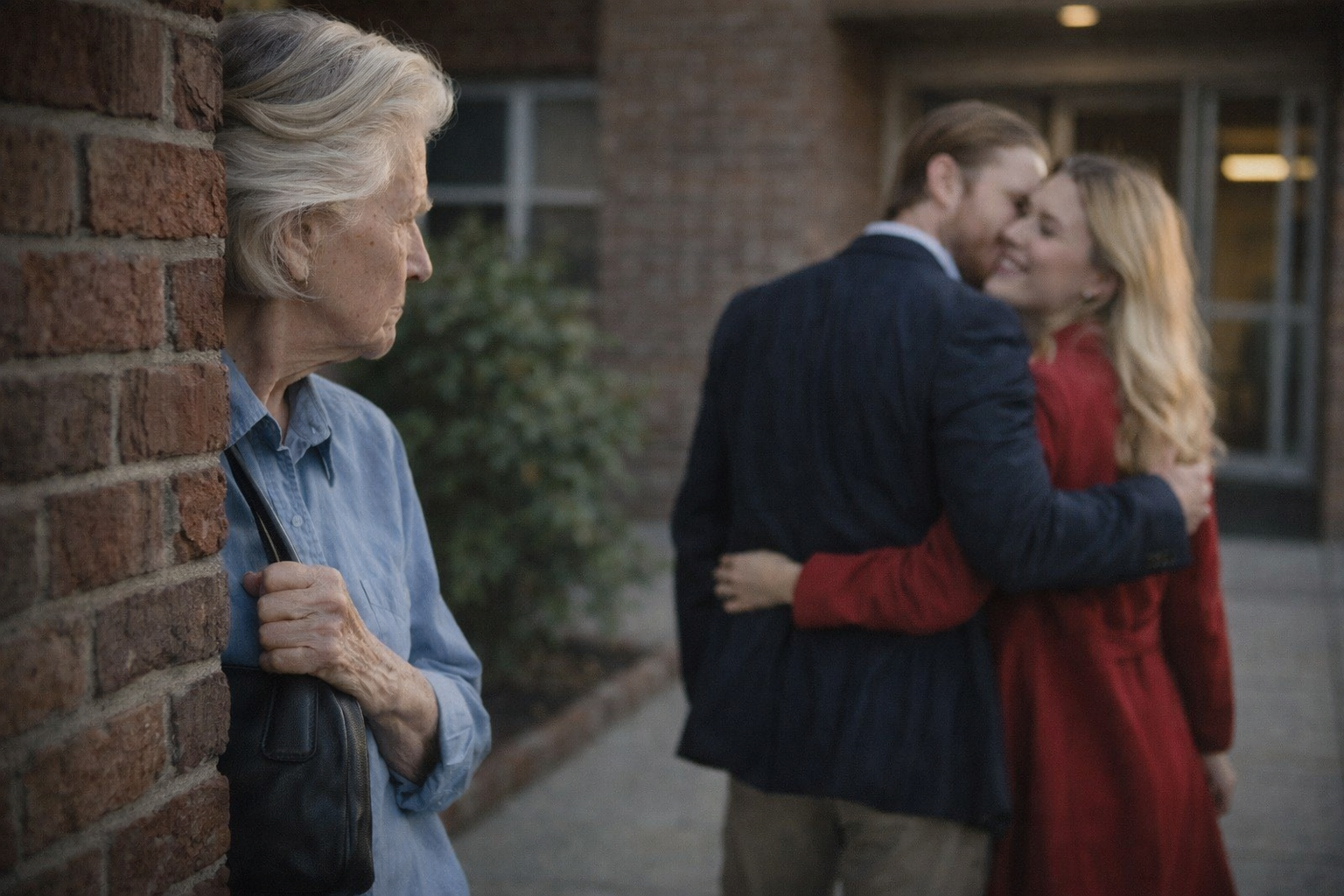 And on Matthew’s arm was a tall blonde woman in a red coat, laughing with her head tipped back while he kissed her temple.