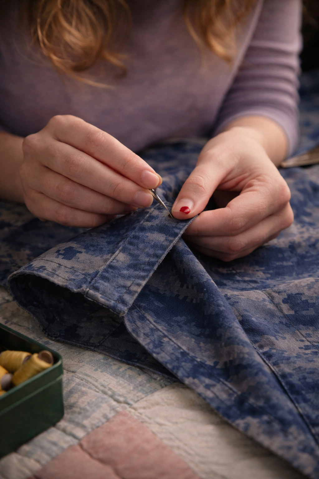 The first night I started stitching, my fingers were shaking so hard that I jabbed the needle clean through my thumb. I bit down on a yelp, wiped the blood away, and kept going, careful not to let a single drop stain the olive fabric laid out on my quilt.