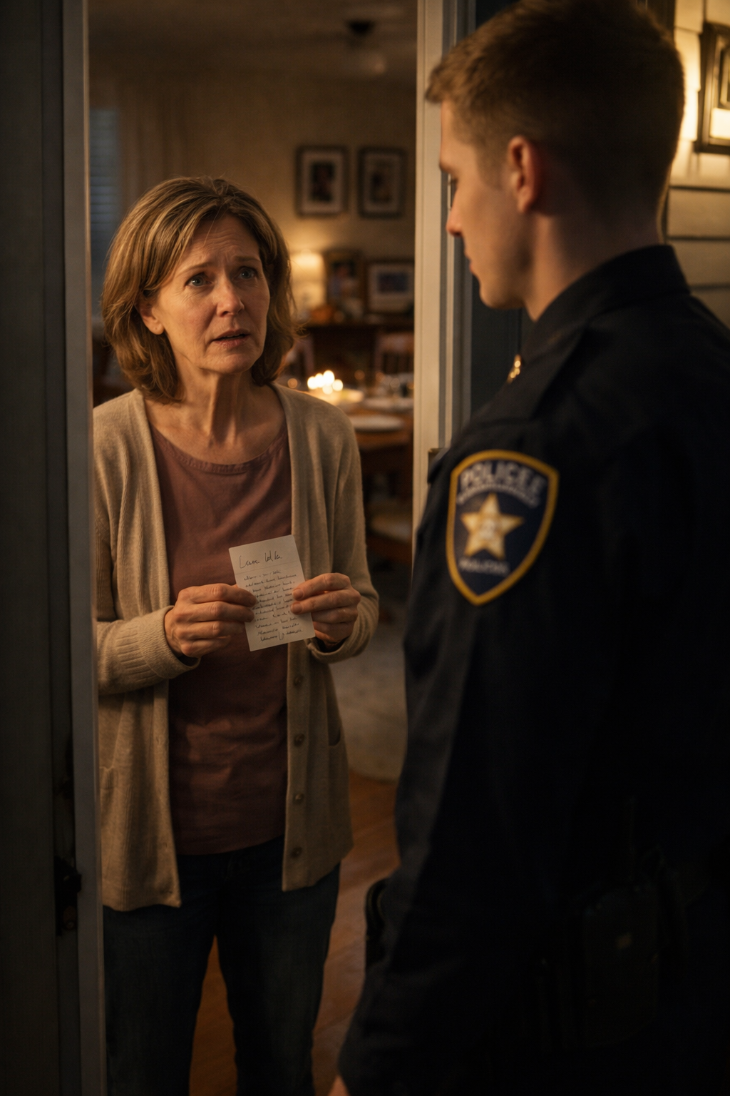 A police officer stood on my porch. Young. Clean cut. Serious.