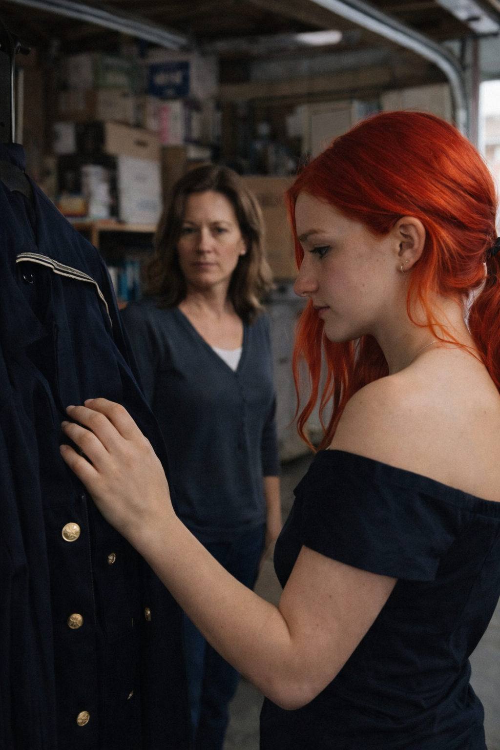She didn’t hear me come in. She was staring at the zipper, hands hovering near it, not touching.