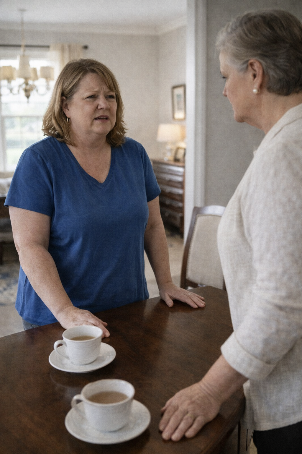Across the table, Margaret lifted her teacup to her lips with complete composure and took a slow, unhurried sip.