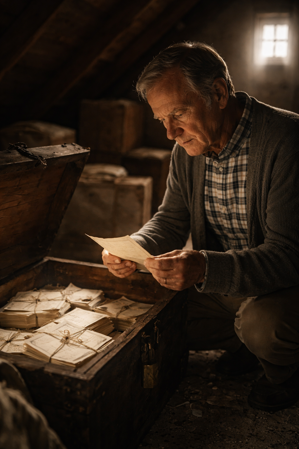 The attic smelled musty, like old books—and something metallic underneath.