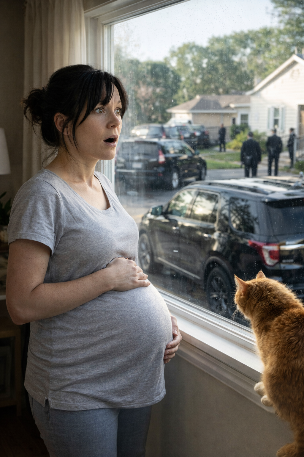 A line of sleek black SUVs filled her street. Men in suits moved with precision, setting up a perimeter around her house.